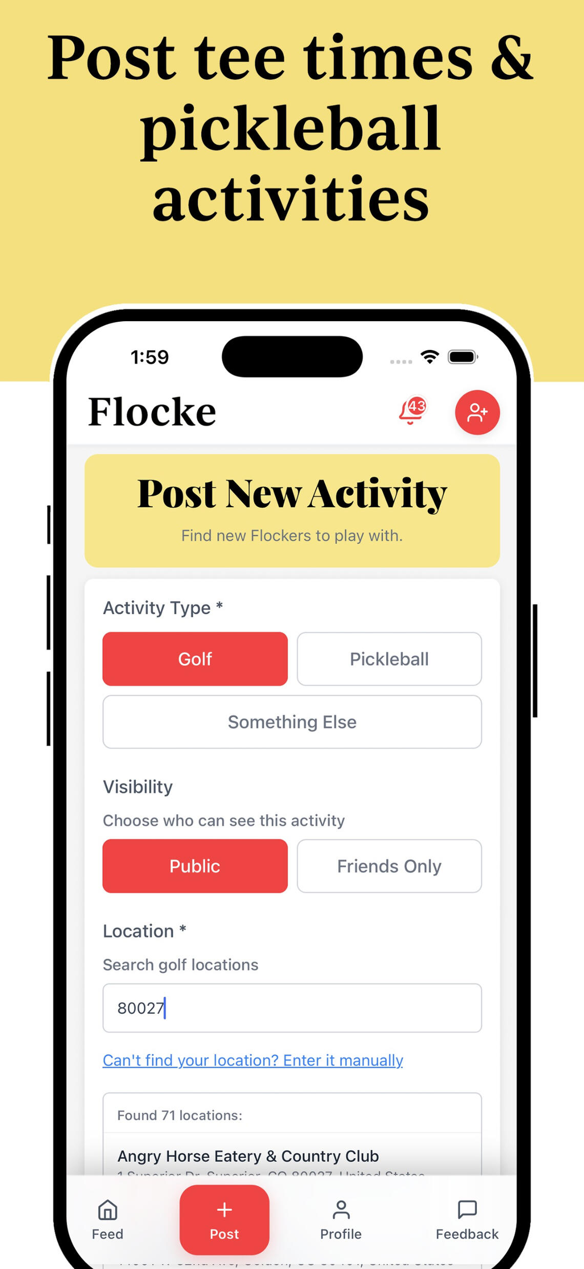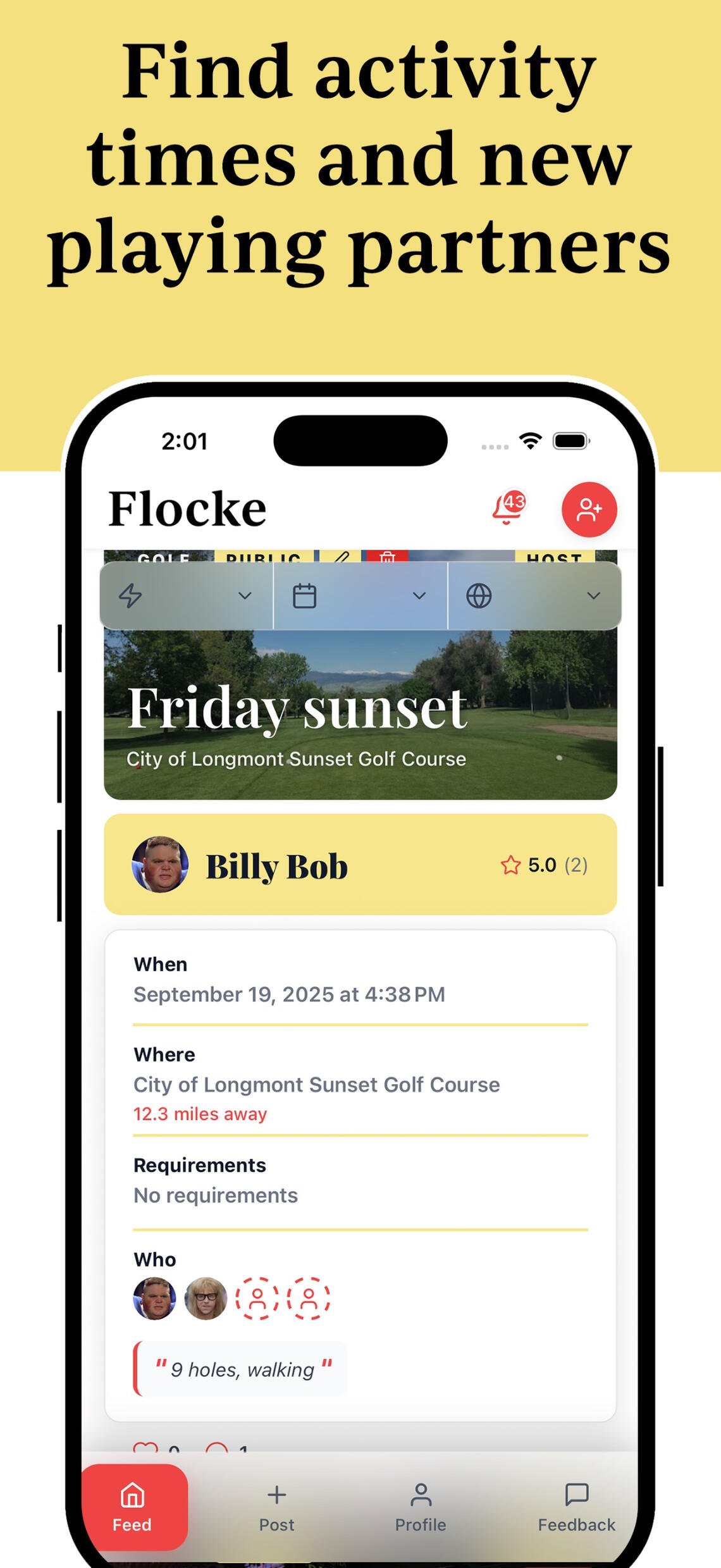 Step 2: Post or Join a Time and Place: Post your open slots and tee times or join groups that match your overall playing style. Get one playing partner or a whole golf foursome set up.Post for only your friends and then open it up to the public to fill empty spots if you need.