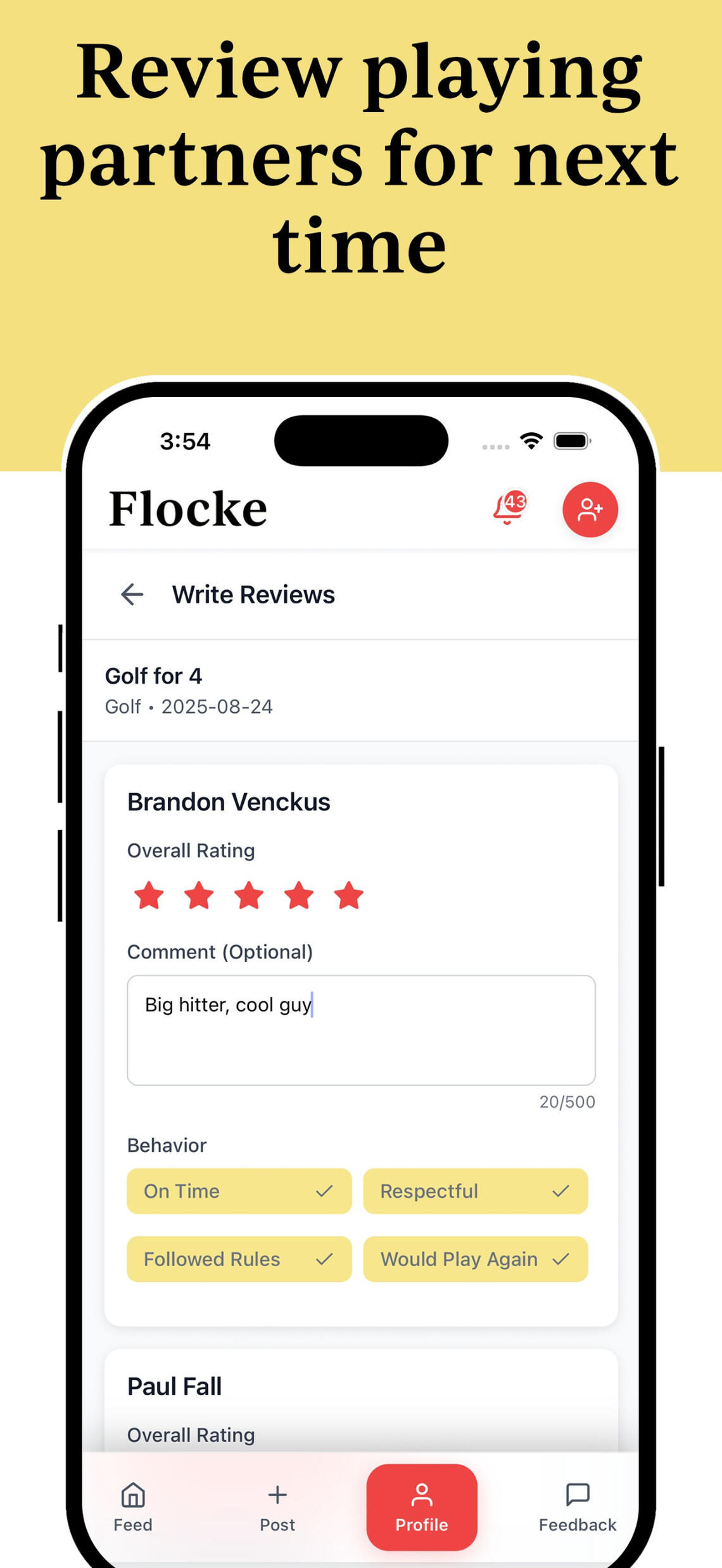 Step 3: Rate and Get Rated: Rate your golf and pickleball playing partners after your activity, ensuring your playing partners are who they say they are for next time.